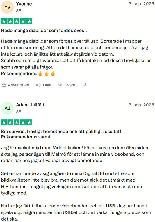 Jag rekommenderar verkligen Videoklinken till alla som vill kunna se tillbaka och återuppleva minnen från förr😃" -